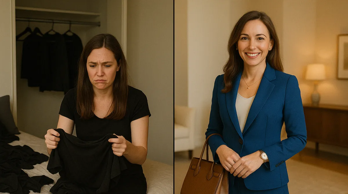Staring at those "safe" black outfits that were supposed to make you look professional, but somehow make you feel... invisible.